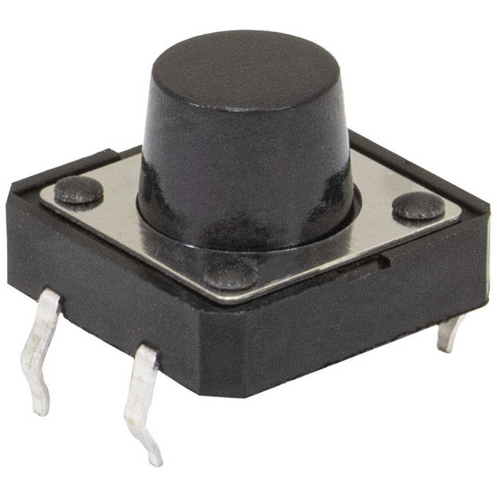 Тактовая кнопка RUICHI KAN1211-0801B, 12x12x8 мм, OFF-(ON), 50 мА, 12 В, 100 мОм – это разновидность простейших механических выключателей, обеспечивающая замыкание контактов (без фиксации) только при наличии давления на поверхность штока (толкателя).