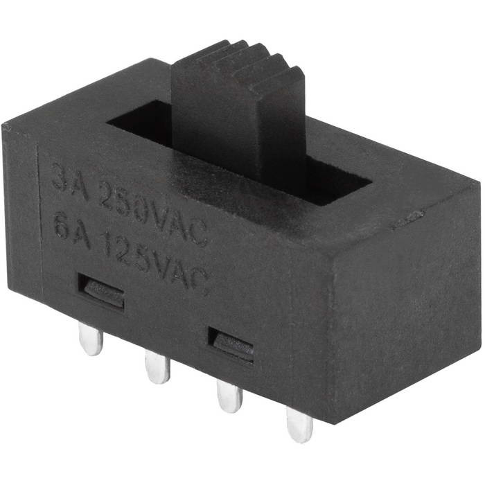 Движковый переключатель для фена RUICHI KBB10, 8 контактов, 6 А, 250 В, -25…+85 °С, 10х20.5х8.5 мм – это устройство коммутации ползункового типа, предназначенное для коммутирования и переключения электрической цепи постоянного и переменного тока.