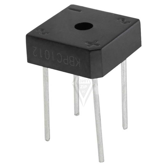 KBPC1012 однофазный диодный мост. Максимальное обратное напряжение (Vrrm) 1200 В, средний выпрямленный ток (Ifav) 10 А. Падение напряжения 1.2 В. Ударный ток (Ifsm) 200 А. Размер 19.6 мм х 19.6 мм x 7.5 мм