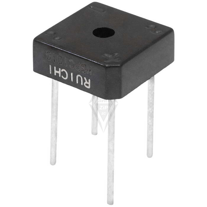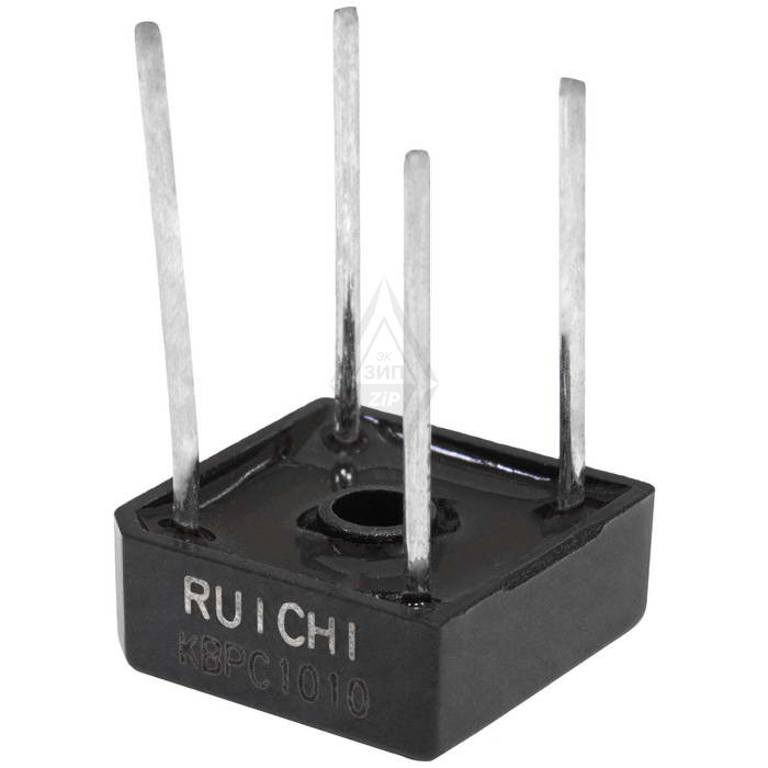 Диодный мост однофазный RUICHI KBPC808, 800 В, 8 А, выводы под пайку, корпус KBPC-8 - это электросхема, в состав которой входят выпрямительные диоды. Он служит для выпрямления переменного напряжения в постоянное.