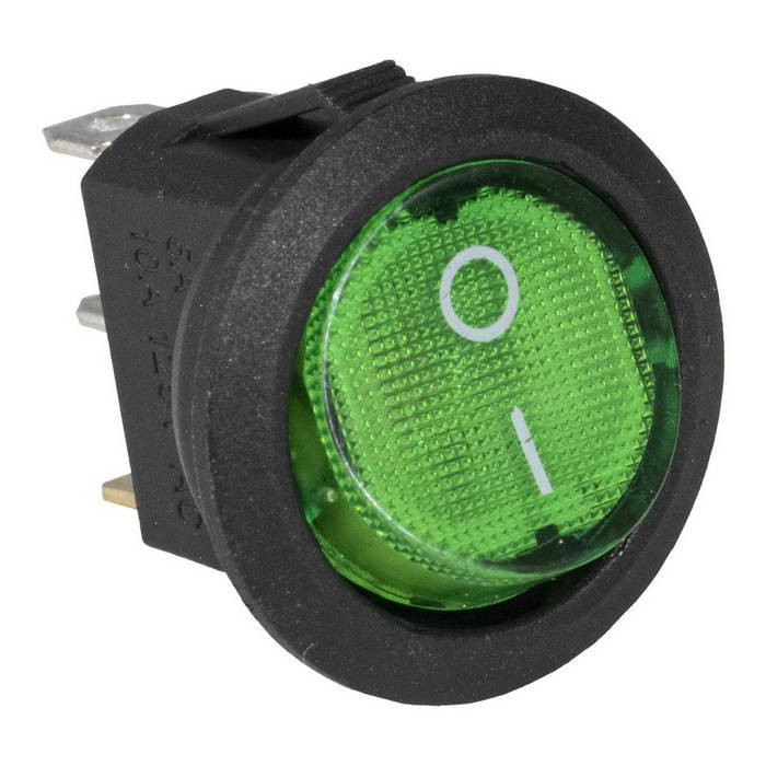 Клавишный переключатель с подсветкой RUICHI KCD1-101N-8-C3-G/3P, ON-OFF, SPST, 3 контакта, 2 А, 250 В, 35 мОм, корпус черный, клавиша зеленая – это коммутационное устройство, предназначенное для использования в промышленной и бытовой электронной аппаратуре. Токоведущие части таких переключателей выполнены из сплава меди, а контакты – из сплава серебра. Конструкции клавишных переключателей предусматривают наличие подсветки в лице светодиода, лампы накаливания или неоновой лампочкой.
