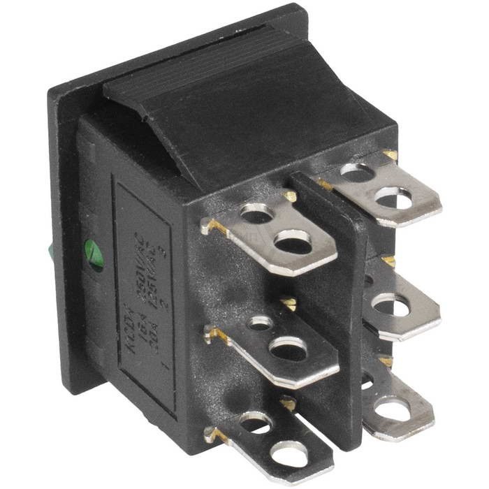 Клавишный переключатель RUICHI KCD4-203N-C6-G/6P, ON-OFF-ON – это коммутационное устройство, предназначенное для использования в промышленной и бытовой электронной аппаратуре. Токоведущие части таких переключателей выполнены из сплава меди, а контакты – из сплава серебра. Конструкции клавишных переключателей предусматривают наличие подсветки в лице светодиода, лампы накаливания или неоновой лампочкой.