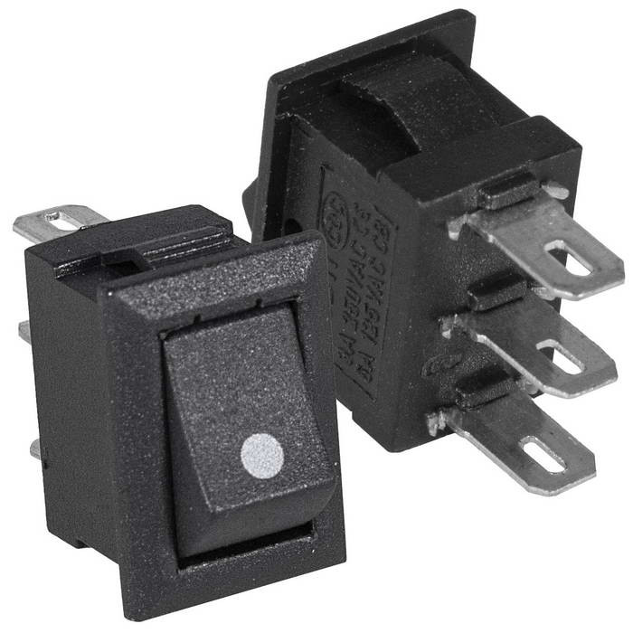 Клавишный переключатель RUICHI KCD5-101-C2-B/3P, ON-OFF, 3 контакта, черный – это коммутационное устройство, предназначенное для использования в промышленной и бытовой электронной аппаратуре. Токоведущие части таких переключателей выполнены из сплава меди, а контакты – из сплава серебра. Конструкции клавишных переключателей предусматривают наличие подсветки в лице светодиода, лампы накаливания или неоновой лампочкой.