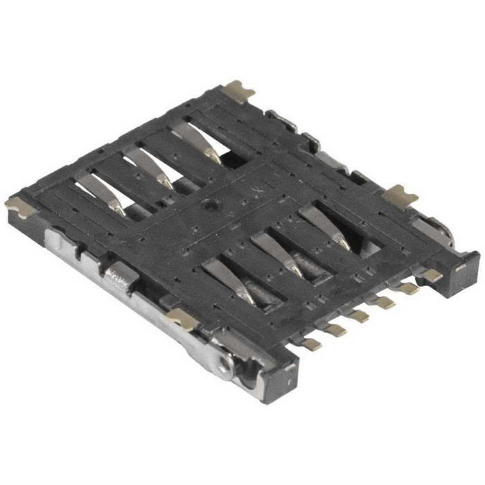 Коннектор SIM-карты RUICHI KF034, 1.35 H, 6 контактов считывает всю информацию с мобильной карты/SIM и отображает данные на экране. Он напрямую связан с материнской платой и в случае установки сим-карты обеспечивает их полное взаимодействие. Держатель сим-карты стандартный и полностью унифицированый для всех известных мобильных устройств и операторов.