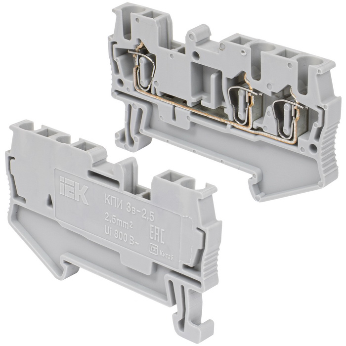 Клемма пружинная КПИ 3в-2.5 3 вывода 31А сер. YZN11-3-002-K03 IEK арт.P694537