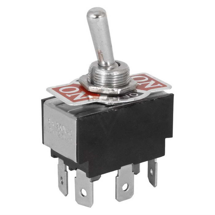 Тумблер трехпозиционный двухполюсный RUICHI KN3(B)-203P, ON-OFF-ON, 6 контактов - это малогабаритный переключатель на два либо три положения с рычажно-пружинным приводом. Применяется главным образом для коммутации цепей управления.
