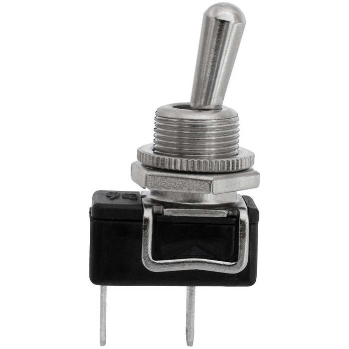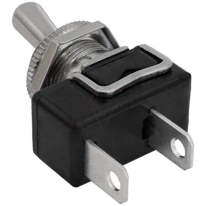 Тумблер двухпозиционный однополюсный RUICHI KN3E-101MP, 46.7х14.5х22.9 мм, ON-OFF, SPST, 6 А, 250 В, 50 мОм, 2 контакта, под пайку - это малогабаритный переключатель на два либо три положения с рычажно-пружинным приводом. Применяется главным образом для коммутации цепей управления.