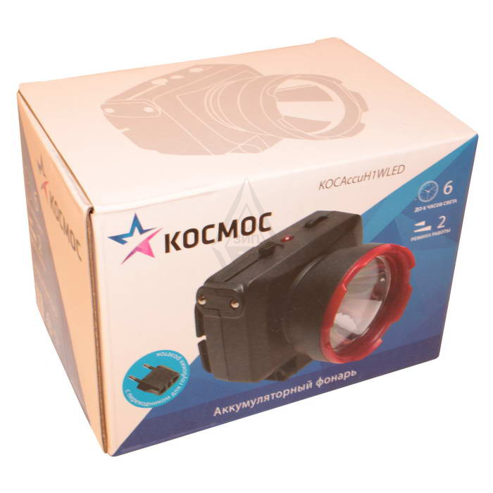 Фонари Космос H1W КОСМОС это мощный аккумуляторный налобный фонарь, предназначенный для хозяйственных работ. Он оснащён одним светодиодом и имеет два режима работы: турбо-яркость (до 2 часов работы) и номинальный режим (до 6 часов). Фонарь заряжается напрямую от сети и имеет степень защиты IP33.