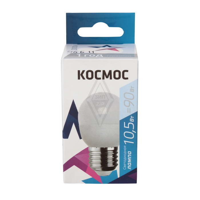 Лампы светодиодные Космос LkeLED10.5wGL45E2745 КОСМОС это энергоэффективный и долговечный источник света, предназначенный для использования в жилых и общественных помещениях. Она обладает мощностью 10,5 Вт и цоколем E27, что делает её подходящей для установки в различных типах светильников.