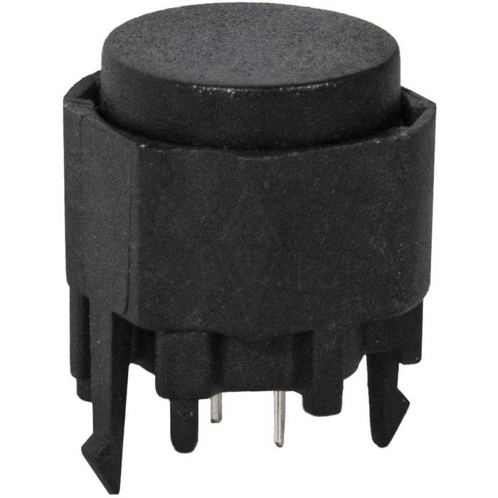 Миниатюрная кнопка без фиксации RUICHI KS12-P1.5-BBN-5N-S, 2 контакта, круглая, корпус черный, кнопка черная – это изделие модульной конструкции, которое используется для создания устройств коммутирования электрических цепей или других сигналов.