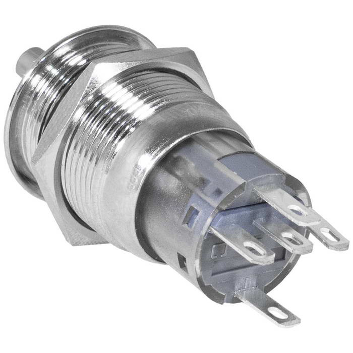 Кнопка антивандальная RUICHI LAS1-AGQ-11X/21/B/N, ON-ON, рабочая температура -25…+55 °C, никелированная латунь максимально долговечна и надежна. Устройство способно безотказно работать при частой эксплуатации и самых тяжелых условиях. Именно поэтому такие кнопки устанавливаются в тех местах, где существует повышенный риск повреждения, например, на производственных предприятиях или объектах с большой проходимостью людей. Антивандальные кнопки часто можно встретить в лифтах, около входных дверей зданий или метрополитене.