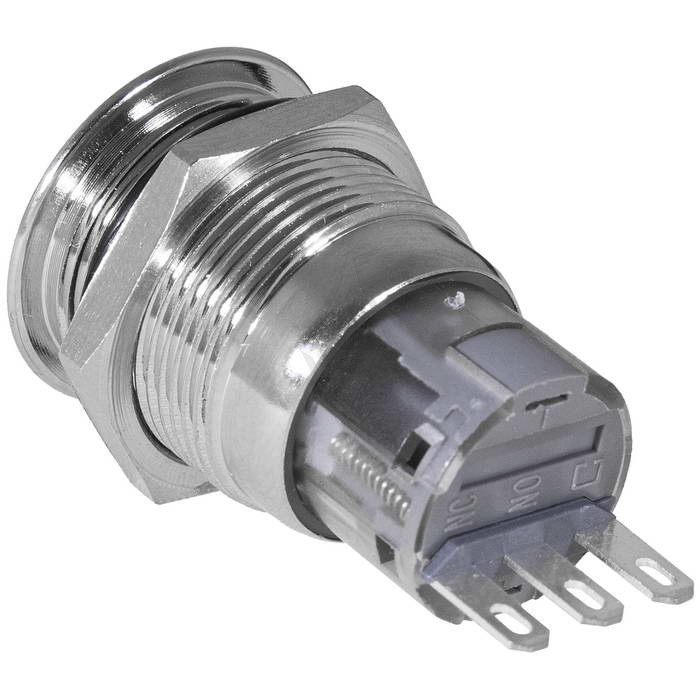 Кнопка антивандальная RUICHI LAS1-AGQ-11Y/21/N, ON-ON, рабочая температура -25…+55 °C, никелированная латунь максимально долговечна и надежна. Устройство способно безотказно работать при частой эксплуатации и самых тяжелых условиях. Именно поэтому такие кнопки устанавливаются в тех местах, где существует повышенный риск повреждения, например, на производственных предприятиях или объектах с большой проходимостью людей. Антивандальные кнопки часто можно встретить в лифтах, около входных дверей зданий или метрополитене.