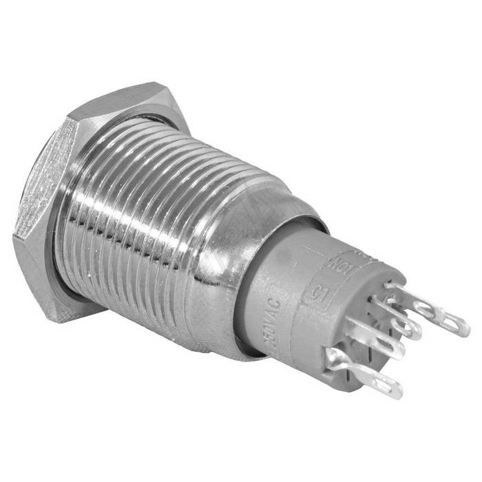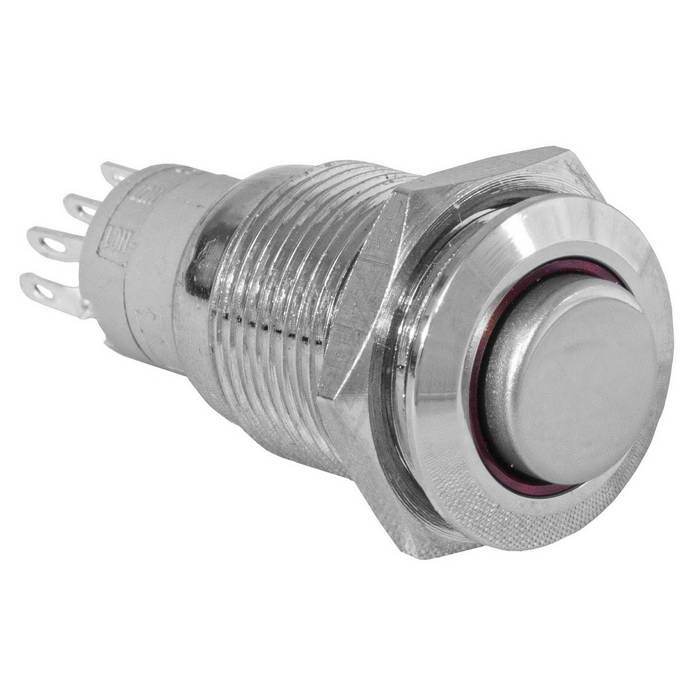 Кнопка антивандальная с подсветкой RUICHI LAS2-GQH-11E/Y on-(on), М16, IP40, никелированная латунь максимально долговечна и надежна. Устройство способно безотказно работать при частой эксплуатации и самых тяжелых условиях. Именно поэтому такие кнопки устанавливаются в тех местах, где существует повышенный риск повреждения, например, на производственных предприятиях или объектах с большой проходимостью людей. Антивандальные кнопки часто можно встретить в лифтах, около входных дверей зданий или метрополитене.