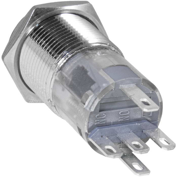 Кнопка антивандальная RUICHI LAS2GQF-11DT/R/N, ON-(ON), рабочая температура -25…+55 °C, никелированная латунь максимально долговечна и надежна. Устройство способно безотказно работать при частой эксплуатации и самых тяжелых условиях. Именно поэтому такие кнопки устанавливаются в тех местах, где существует повышенный риск повреждения, например, на производственных предприятиях или объектах с большой проходимостью людей. Антивандальные кнопки часто можно встретить в лифтах, около входных дверей зданий или метрополитене.