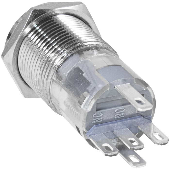 Кнопка антивандальная RUICHI LAS2GQPF-11D/B/N, ON-(ON), рабочая температура -25…+55 °C, никелированная латунь максимально долговечна и надежна. Устройство способно безотказно работать при частой эксплуатации и самых тяжелых условиях. Именно поэтому такие кнопки устанавливаются в тех местах, где существует повышенный риск повреждения, например, на производственных предприятиях или объектах с большой проходимостью людей. Антивандальные кнопки часто можно встретить в лифтах, около входных дверей зданий или метрополитене.