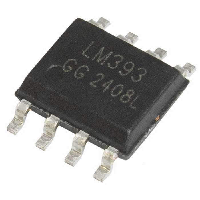 LM393 двухканальный компаратор для поверхностного монтажа в корпусе SOP-8. Напряжение питания ±18 В. Напряжение смещения нуля 5 В макс. Диапазон рабочих температур 0…+70 °C
