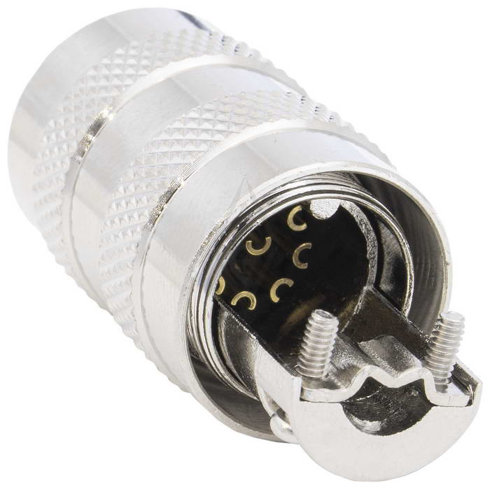 Водонепроницаемый цилиндрический разъём RUICHI M16-8A, вилка, с резьбовым соединением M16x0,75, 8 контактов. Конструкция выполнена в герметичном исполнении, обеспечивающем надёжную защиту от влаги и пыли (как правило, IP67), что гарантирует стабильную работу даже в тяжёлых условиях эксплуатации. Разъём отличается компактными размерами, удобством монтажа и устойчивостью к вибрациям и механическим нагрузкам. Применяется в промышленной автоматике, для подключения многоканальных датчиков, систем управления, контрольно-измерительного оборудования и другой техники, эксплуатируемой в условиях повышенной влажности и загрязнённости.