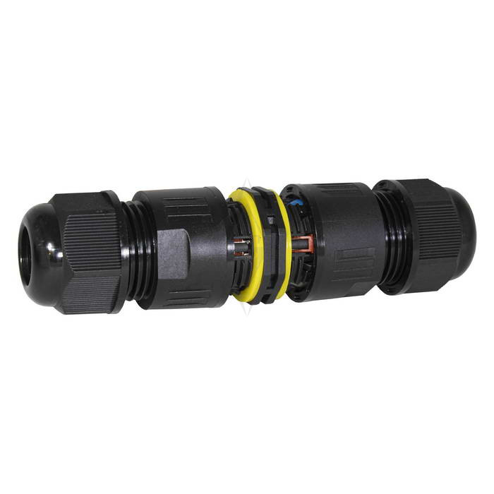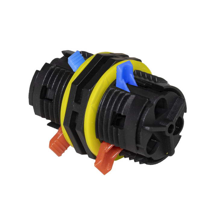 Герметичный разъем RUICHI M20-2P-1, резьба М20, 2 контакта, пружинно-зажимной монтаж, IP68, 16 А, 250 В, корпус PA66 UL94-V2, черный является пылезащищенным и влагозащищенным. Герметичный разъем соответствует высокой степени защиты, что гарантирует работу разъемов при длительном погружении в воду (более 30 минут) на глубину больше 1 м.