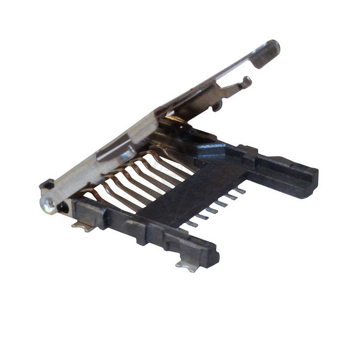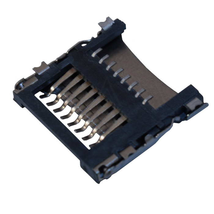 Держатель micro SD карты RUICHI SMD 8 pin, 1.8 H - это слот для подключения карты памяти представляет собой отверстие в виде щели до 2,5 см, в которую вставляется устройство. Эта щелка оснащена специальными контактами, которые при вставлении карты памяти соединяются с нею, после чего происходит считывание информации ПК или ноутбуком.
