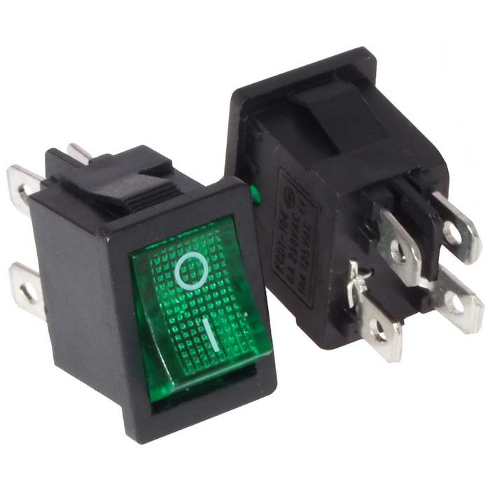 Клавишный переключатель RUICHI MIRS-201(A), ON-OFF зеленый – это коммутационное устройство, предназначенное для использования в промышленной и бытовой электронной аппаратуре. Токоведущие части таких переключателей выполнены из сплава меди, а контакты – из сплава серебра. Конструкции клавишных переключателей предусматривают наличие подсветки в лице светодиода, лампы накаливания или неоновой лампочкой.