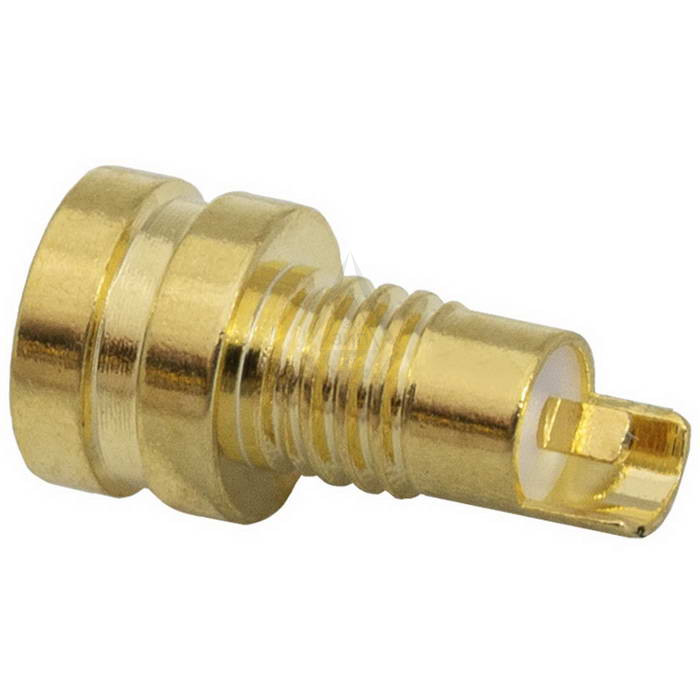 Высокочастотный разъем круглый с резьбой (розетка) RUICHI MMCX-B высота 8.5 мм, диаметр 4.3 мм, до 6 ГГц, 50 Ом – конструкция, предназначенная для подсоединения различных электронных устройств к электрическим цепям для осуществления согласованной надежной передачи сигналов высокой частоты. При этом в местах соединения потери сводятся к минимуму. Высокочастотные разъемы могут иметь обычные или изолированные корпусы. По способу соединения они могут быть: с байонетным соединением или с резьбовым соединением.