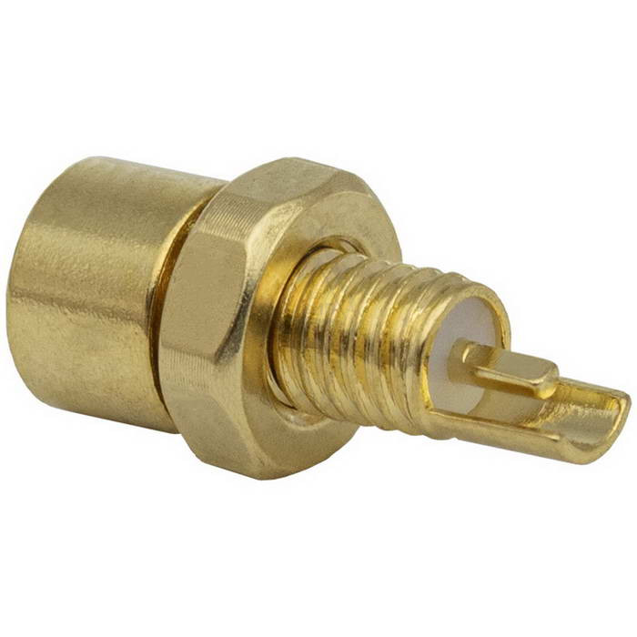 Высокочастотный разъем круглый с резьбой (розетка) RUICHI MMCX-A, высота 10.5 мм, диаметр 4.3 мм, до 6 ГГц, 50 Ом, гайка в комплекте – конструкция, предназначенная для подсоединения различных электронных устройств к электрическим цепям для осуществления согласованной надежной передачи сигналов высокой частоты. При этом в местах соединения потери сводятся к минимуму. Высокочастотные разъемы могут иметь обычные или изолированные корпусы. По способу соединения они могут быть: с байонетным соединением или с резьбовым соединением.