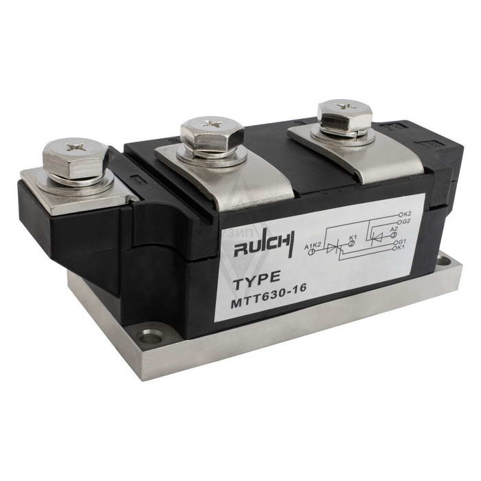 Тиристорный модуль силовой полупроводниковый RUICHI МТТ630-16, 630 А, корпус С-16 - полупроводниковый силовой модуль, который регулируют и преобразовывает постоянный и переменный ток до 250 ампер частотой до 50 Гц в цепях с напряжением до 1200 вольт.