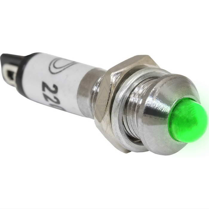 Лампочка неоновая в корпусе RUICHI N-706-G, 220 В, зелёная, 25 мА - это газоразрядная лампа, состоит из баллона, заполненного разреженным инертным газом (неоном), и укрепленных внутри баллона двух дисковых или цилиндрических электродов.