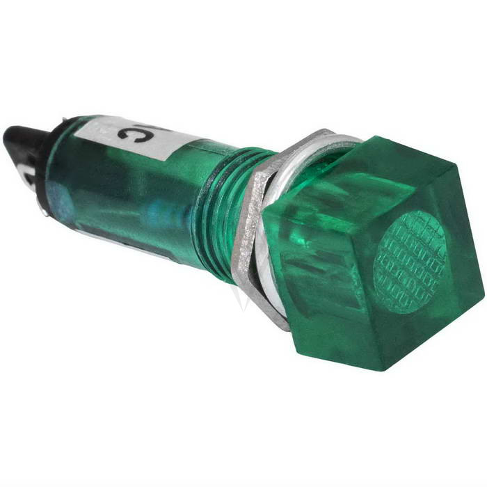 Лампочка неоновая в корпусе RUICHI N-802-G, 220 В, зелёная - это газоразрядная лампа, состоит из баллона, заполненного разреженным инертным газом (неоном), и укрепленных внутри баллона двух дисковых или цилиндрических электродов.