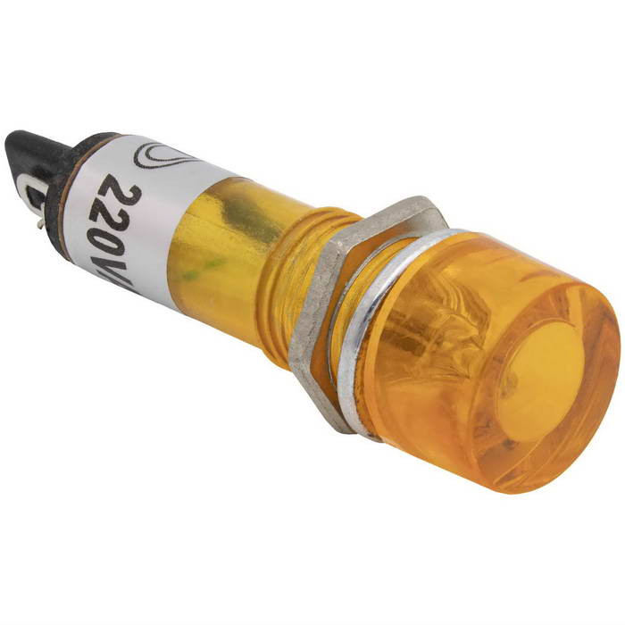 Лампочка неоновая в корпусе RUICHI N-804-Y, 220 В, желтая - это газоразрядная лампа, состоит из баллона, заполненного разреженным инертным газом (неоном), и укрепленных внутри баллона двух дисковых или цилиндрических электродов.