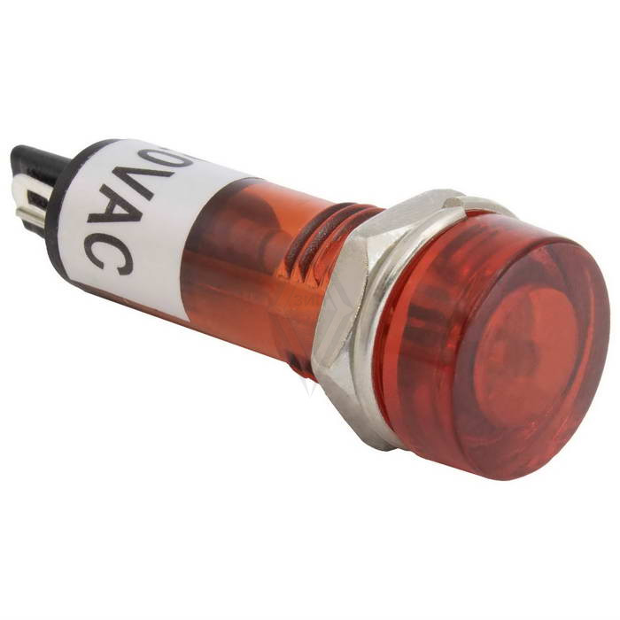 Лампочка неоновая в корпусе RUICHI N-805-R, 220 В, красная - это газоразрядная лампа, состоит из баллона, заполненного разреженным инертным газом (неоном), и укрепленных внутри баллона двух дисковых или цилиндрических электродов.