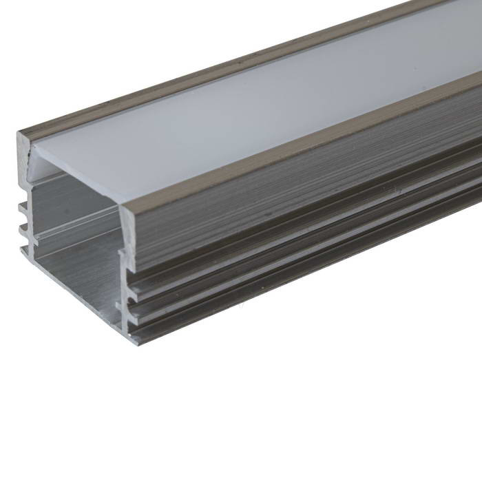 Съемный пластиковый экран обеспечивает равномерное рассеивание светового излучения. Накладной профиль для светодиодной ленты легко устанавливается на требуемую поверхность посредством крепежей.