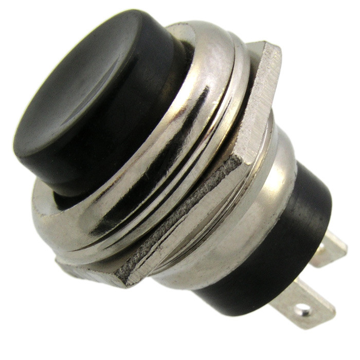 Кнопочный переключатель RUICHI PBS-26B, OFF-(ON), чёрный – это коммутационное устройство с механизмом нажимного действия и обратным приводом, которое предназначено для размыкания и замыкания электрической цепи.