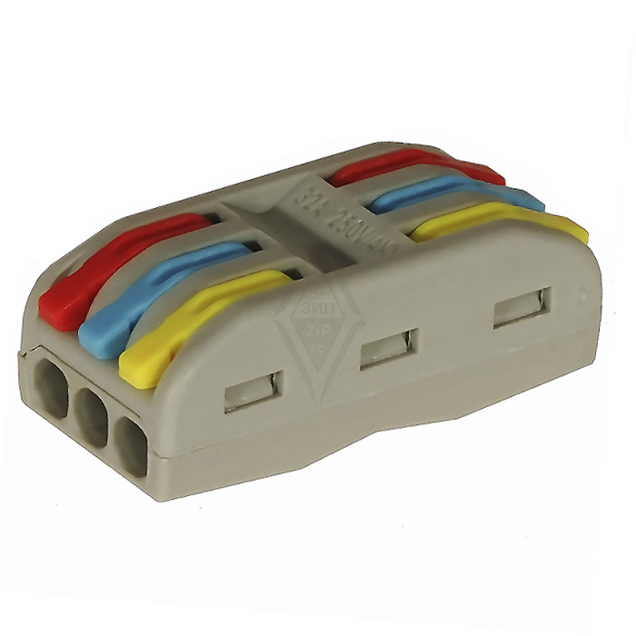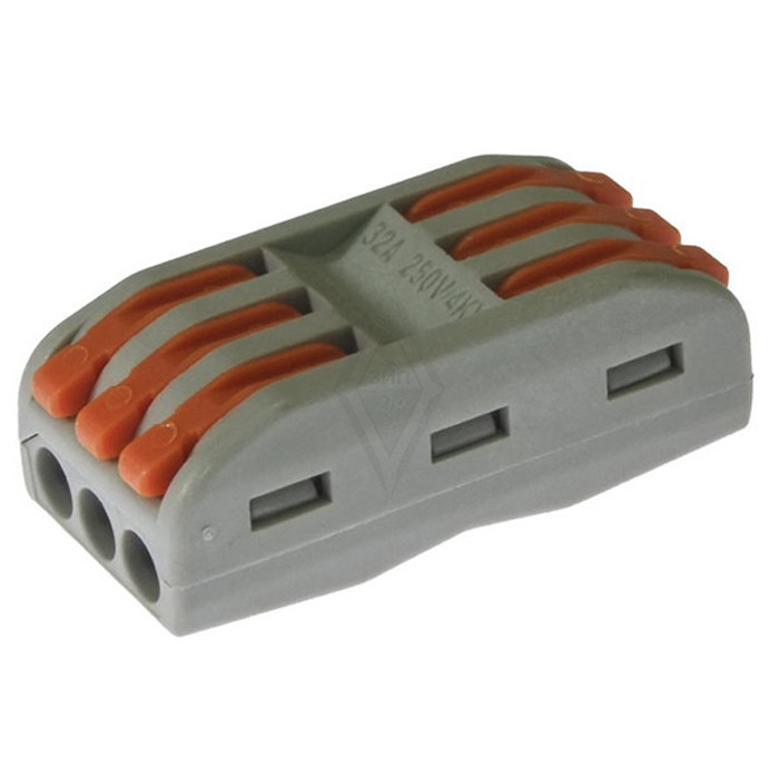 Клемма зажимная проходная безвинтовая RUICHI PCT-223, 6-ти контактная, 3-х проводная, аналог WAGO – это навесная клеммная колодка, используемая при электромонтажных работах для соединения проводов.