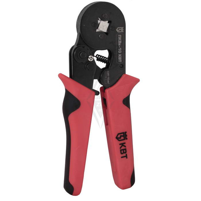 Обжимной инструмент ПКВк-10 КВТ это универсальные пресс-клещи, предназначенные для обжима втулочных наконечников сечением от 0,25 до 10 мм². Они также подходят для изолированных наконечников НШВИ и НШВ с сечением 2×0,5–2×6 мм². Инструмент оснащён саморегулирующейся матрицей для 17 размеров втулочных наконечников и усовершенствованным храповым механизмом для полного цикла опрессовки.