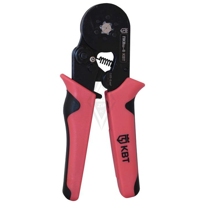 Обжимной инструмент ПКВш-6 КВТ это универсальные пресс-клещи, предназначенные для работы с втулочными наконечниками сечением от 0,25 до 6 мм². Они подходят для таких типов наконечников, как НШВИ, НШВ и НШВИ(2). Инструмент оснащён саморегулирующейся матрицей, которая подходит для 15 размеров втулочных наконечников, и усовершенствованным храповым механизмом для обеспечения полного цикла опрессовки.