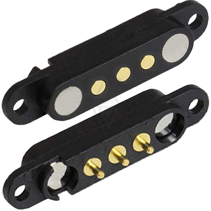 Разъем питания магнитный подпружиненный RUICHI POGO pin, 3 контакта, комплект male-female, шаг 2.54 мм, с фланцами для крепления к панели мобильных устройств с постоянным током.