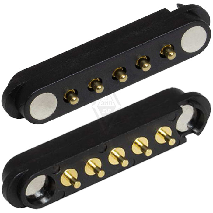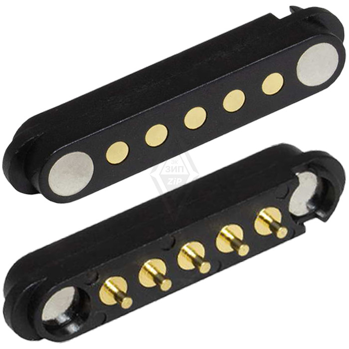 Разъем питания магнитный подпружиненный RUICHI POGO pin, 5 контактов, комплект male-female, шаг 2.54 мм используется в мобильных устройствах с постоянным током.