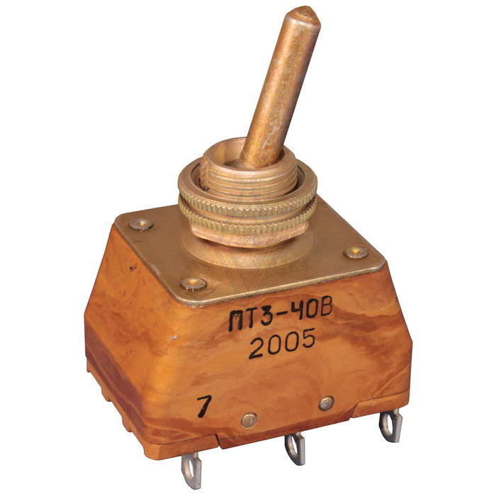 Тумблеры ПТ3-40В с протектором это трёхполюсный переключатель с фиксацией ручки управления в двух крайних и среднем положении. Он предназначен для коммутации электрических цепей постоянного и переменного тока при напряжении до 380 В и силе тока до 16 А. Тумблер оснащён протектором, который защищает контакты от механических повреждений и увеличивает их срок службы.
