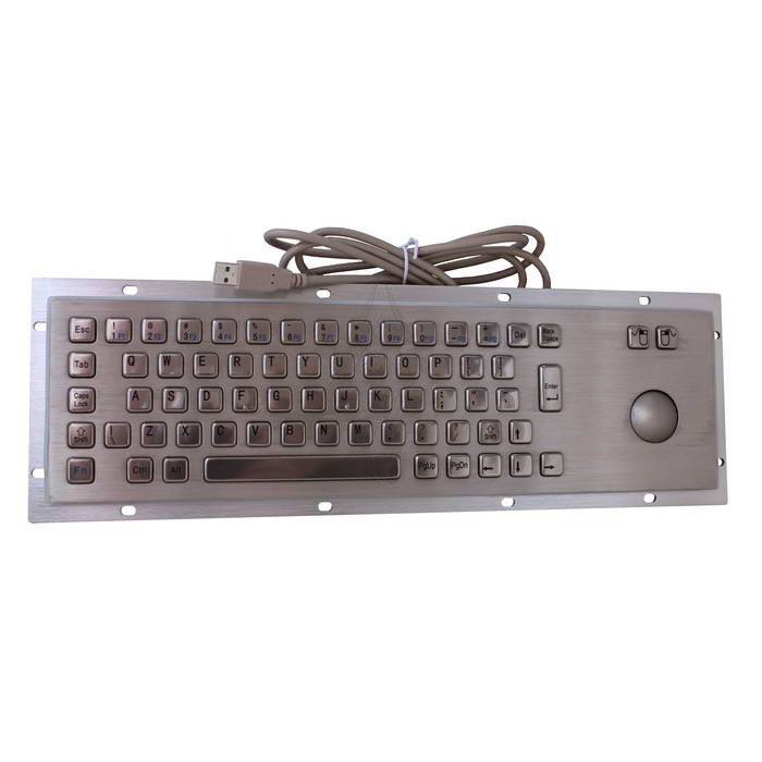 Антивандальная влагозащищённая металлическая клавиатура RUICHI RB01-65-RM, 66 клавиш с трекболом, серебристого цвета, нержавеющая сталь, подключение USB.
