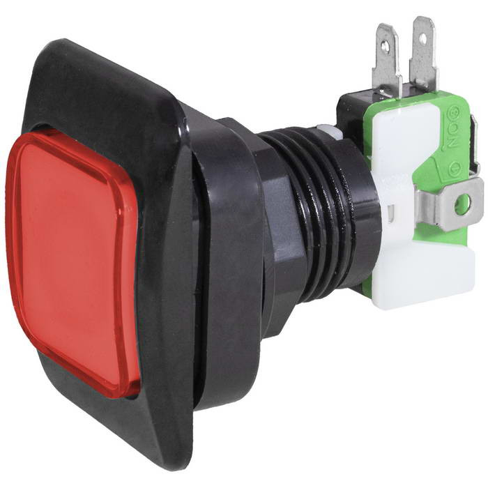 Кнопка GMSI RUICHI RC-1010-R, 22 мм, 3 А, 20 мОм, LED-подсветка, 12 В, квадратная, корпус черный, толкатель красный предназначена для коммутации цепи сигнализации, питания и управления с коммутируемым напряжением до 12 В, силой тока до 3 А и контактным сопротивлением не более 20 мОм. Данная кнопка выполняют функции включения и отключения 1-го направления цепи.