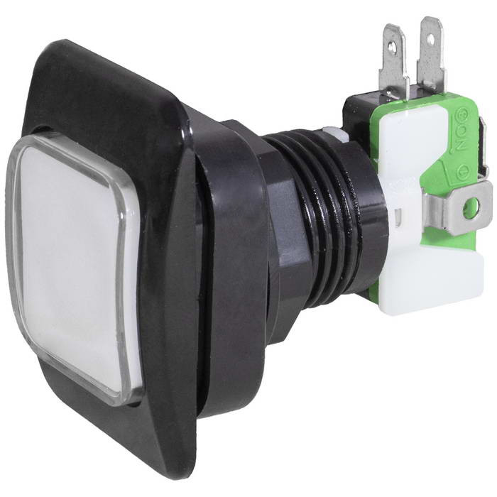 Кнопка GMSI RUICHI RC-1010-W, 22 мм, 3 А, 20 мОм, LED-подсветка, 12 В, квадратная, корпус черный, толкатель белый предназначена для коммутации цепи сигнализации, питания и управления с коммутируемым напряжением до 12 В, силой тока до 3 А и контактным сопротивлением не более 20 мОм. Данная кнопка выполняют функции включения и отключения 1-го направления цепи.