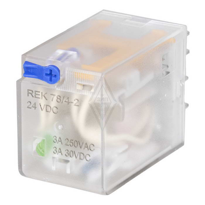 Электромагнитное реле RUICHI REK 78/4-2, 4PDT, 4C, 24 В, 3 А, 0.9 Вт, 50 мОм, -25...+55 °C, пластик, крышка съемная - устройство, предназначенное для замыкания или размыкания механических электрических контактов при подаче на обмотку тока, который порождает магнитное поле. Это, в свою очередь, вызывает перемещение ферромагнитного якоря, который механически связан с контактами, а последующее перемещение самих контактов коммутирует внешнюю электрическую цепь.