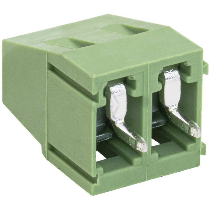 Винтовой модульный клеммный блок RUICHI RG128-5.0-02P, на плату, 2 контакта, шаг 5.00 мм - разновидность разъемного соединения проводов к печатным платам. Представляет собой группу винтовых или пружинных зажимов, собранную на пластиковом основании и снабженную контактами для пайки на печатную плату. Служит удобным и организованным способом выполнения электрических соединений, будь то распределение электроэнергии, маршрутизация сигналов или проводка управления.