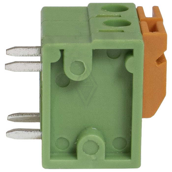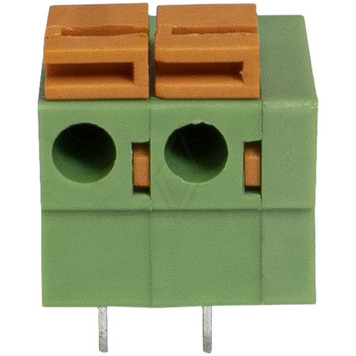 Нажимной модульный клеммный блок RUICHI RG142R-5.08-02P, на плату, 2 контакта, шаг 5.08 мм - разновидность разъемного соединения проводов к печатным платам. Представляет собой группу винтовых или пружинных зажимов, собранную на пластиковом основании и снабженную контактами для пайки на печатную плату. Служит удобным и организованным способом выполнения электрических соединений, будь то распределение электроэнергии, маршрутизация сигналов или проводка управления.