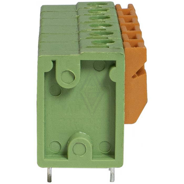Нажимной модульный клеммный блок RUICHI RG142V-5.08-02P, на плату, 2 контактов, шаг 5.08 мм - разновидность разъемного соединения проводов к печатным платам. Представляет собой группу винтовых или пружинных зажимов, собранную на пластиковом основании и снабженную контактами для пайки на печатную плату. Служит удобным и организованным способом выполнения электрических соединений, будь то распределение электроэнергии, маршрутизация сигналов или проводка управления.