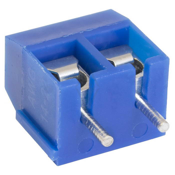 Винтовой модульный клеммный блок RUICHI RG301-5.0-02P, на плату, 2 контакта, шаг 5.00 мм - разновидность разъемного соединения проводов к печатным платам. Представляет собой группу винтовых или пружинных зажимов, собранную на пластиковом основании и снабженную контактами для пайки на печатную плату. Служит удобным и организованным способом выполнения электрических соединений, будь то распределение электроэнергии, маршрутизация сигналов или проводка управления.