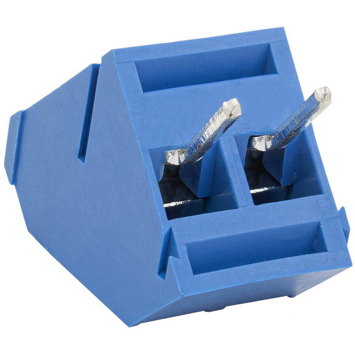 Винтовой модульный клеммный блок RUICHI RG330-5.0-02P, на плату, угловой, угол 45°, 2 контакта, шаг 5.00 мм - разновидность разъемного соединения проводов к печатным платам. Представляет собой группу винтовых или пружинных зажимов, собранную на пластиковом основании и снабженную контактами для пайки на печатную плату. Служит удобным и организованным способом выполнения электрических соединений, будь то распределение электроэнергии, маршрутизация сигналов или проводка управления.
