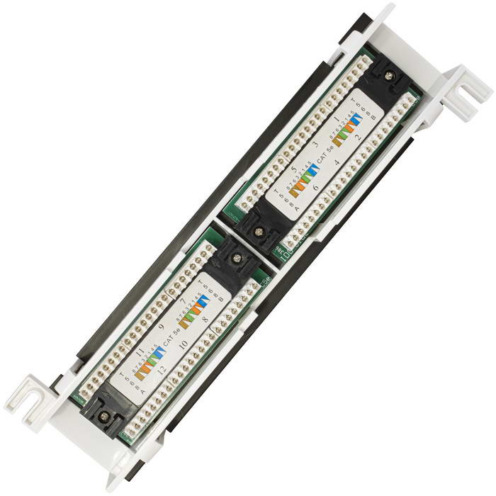 Патч-панель RUICHI RH-PPW1U12U5E предназначена, для коммутации активного сетевого оборудования с портами рабочих компьютеров (или другого оборудования), а также для использования в паре с другой патч-панелью (так называемое двойное представление портов), где первая представляет порты активного сетевого оборудования, а вторая – порты присоединяемых устройств (компьютеров, телефонов, сетевых принтеров и т.п.). Разъемы пронумерованы, имеют площадки для дополнительной маркировки. Контакты, расположенные на обратной стороне также имеют цифровую и цветовую маркировку.