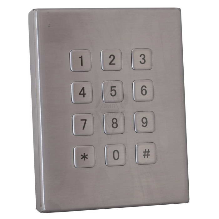 Антивандальная влагозащищённая металлическая клавиатура 12 клавиш, серебристого цвета, нержавеющая сталь.